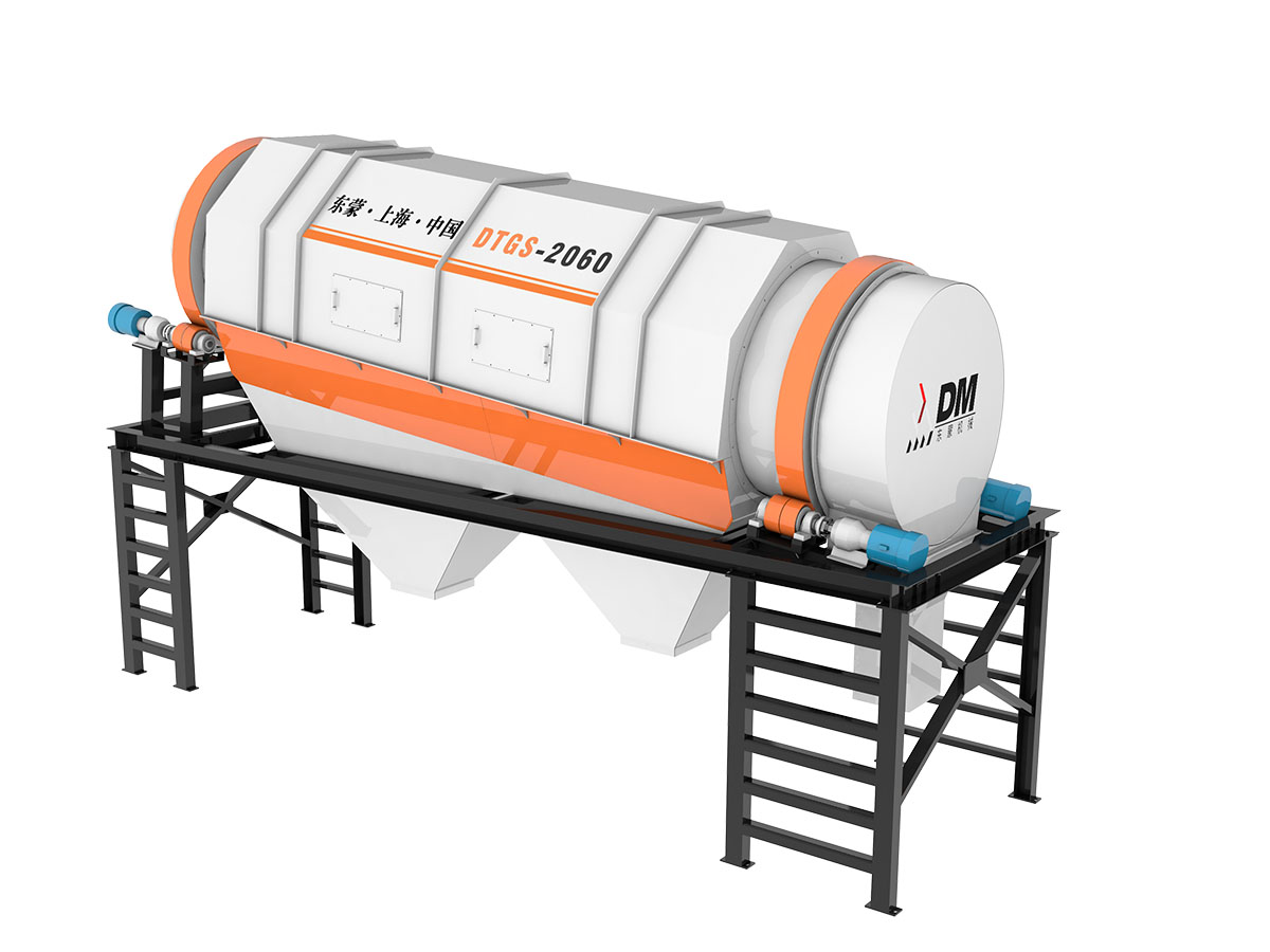 Performance Requirements: The drum screen box features a reinforced design to withstand the impact of large materials. The screen plates are arranged in segments, using either circular or square shapes. A dust cover is installed on the top of the drum screen, with an inspection hole above it for easy screen plate replacement. The drum screen uses a four-axis drive system with rubber drive wheels for shock absorption.